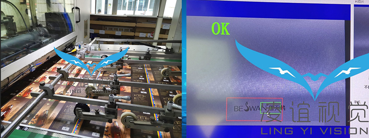 啤機(jī)/模切機(jī)在線檢測系統(tǒng)是加裝在模切機(jī)上,通過對每張待模切的卡紙的局部成像,依據(jù)圖像中的條碼、二維碼、圖形文字、燙金燙銀等特征,來判斷該待模切的卡紙是否存在混料、倒頁、白頁、漏印、漏燙金、漏燙銀,局部印刷不良等不良現(xiàn)象。當(dāng)發(fā)現(xiàn)不良時(shí)及時(shí)輸出停機(jī)報(bào)警信號,供人工排除問題物料并復(fù)位重新運(yùn)行,以確保模切后的產(chǎn)品的質(zhì)量,該系統(tǒng)的高速穩(wěn)定運(yùn)行保障了生產(chǎn)的良率,杜絕了不良產(chǎn)品的產(chǎn)生,避免了客訴現(xiàn)象的產(chǎn)生,大大提高了印刷廠的生產(chǎn)效率。