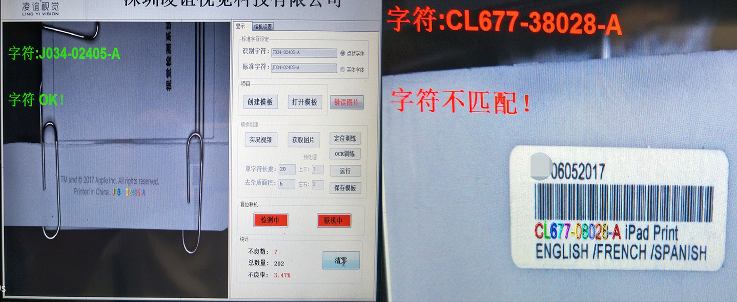 本字符識(shí)別系統(tǒng)常用于配合產(chǎn)品外包裝或產(chǎn)品說明書單頁上的字符識(shí)別防混,通過對(duì)料號(hào)字符的識(shí)別實(shí)現(xiàn)防止錯(cuò)料混料的發(fā)生。系統(tǒng)可適用于手工線或自動(dòng)線,具有識(shí)別速度快、準(zhǔn)確率高的優(yōu)點(diǎn),有助于提高客戶良品率及生產(chǎn)效率。杜絕不良品流出導(dǎo)致的產(chǎn)品召回。